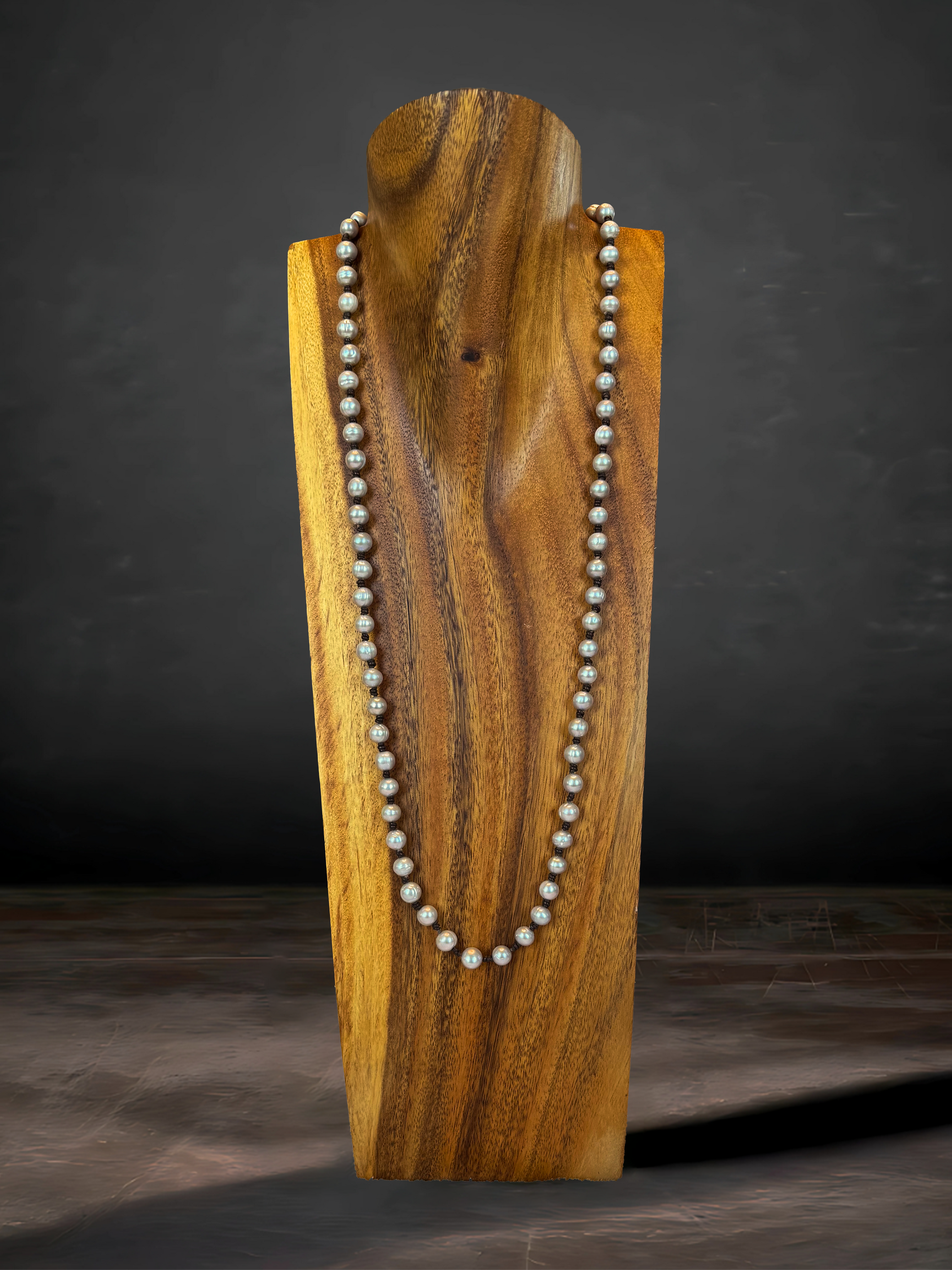 Beautifully crafted 36" gray freshwater pearls, double-knotted on Greek leather for a sophisticated, earthy aesthetic.